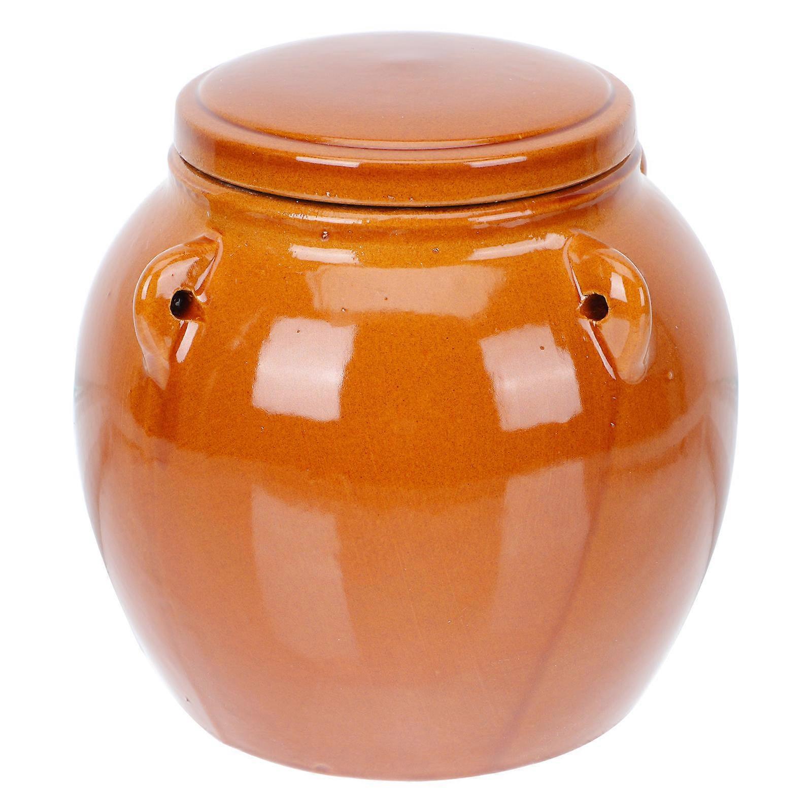 Ceramic Pickle Jar with Lid for Home Use Brown Easy to Clean Sealed Storage Container 1 Pc