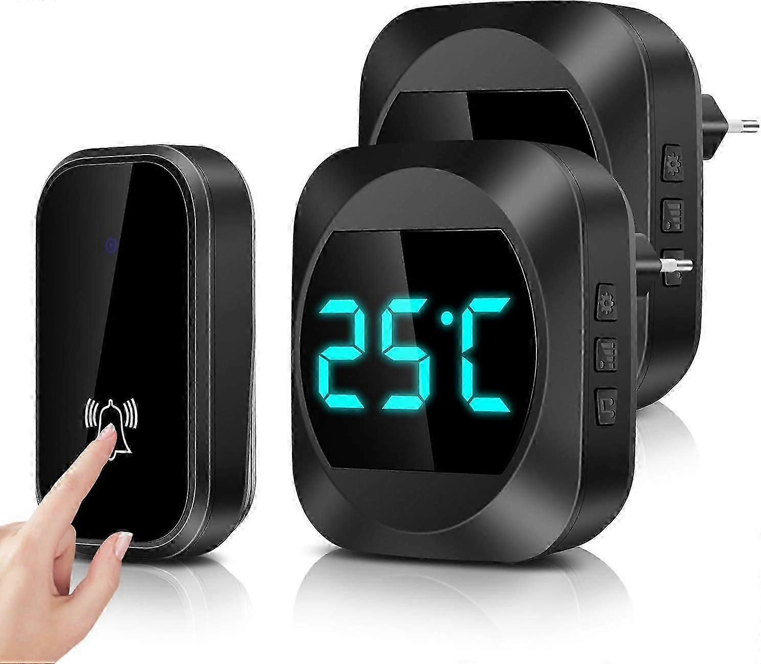 Wireless Doorbell, with LED Temperature, Waterproof Door Bell Electronic Chime Kit with 2 Plug-in Receivers