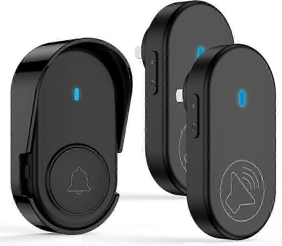 Wireless Doorbell with 2 Plug-In Receivers IP65 Waterproof Door Chime Operating Range Up to 1050 Feet/320M 5 Adjustment Volume Levels Black