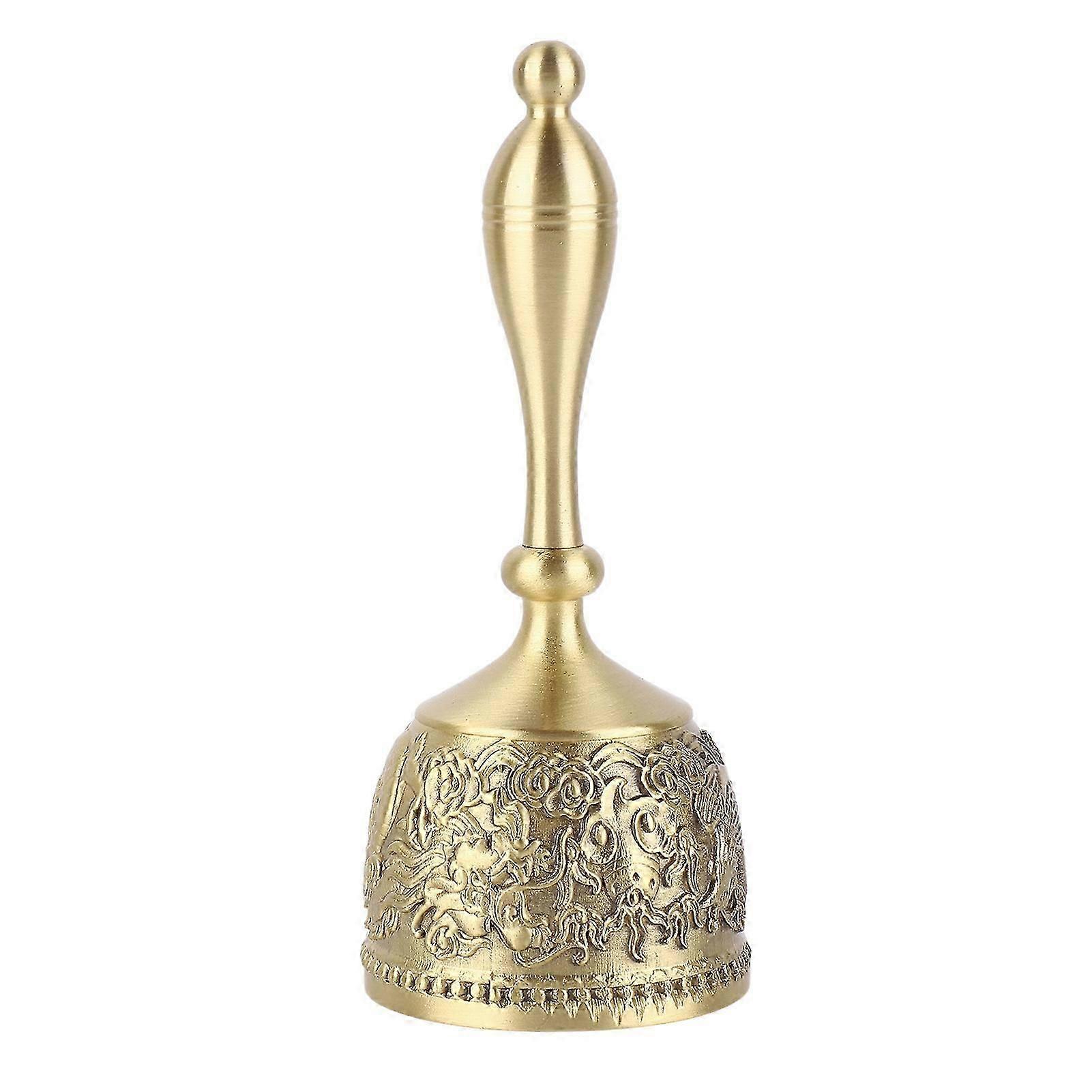 Hand Call Bell 4.7in Long Pure Brass Exquisite Carved Pattern Curved Handle Dinner Bell for Wedding Party Family Bar