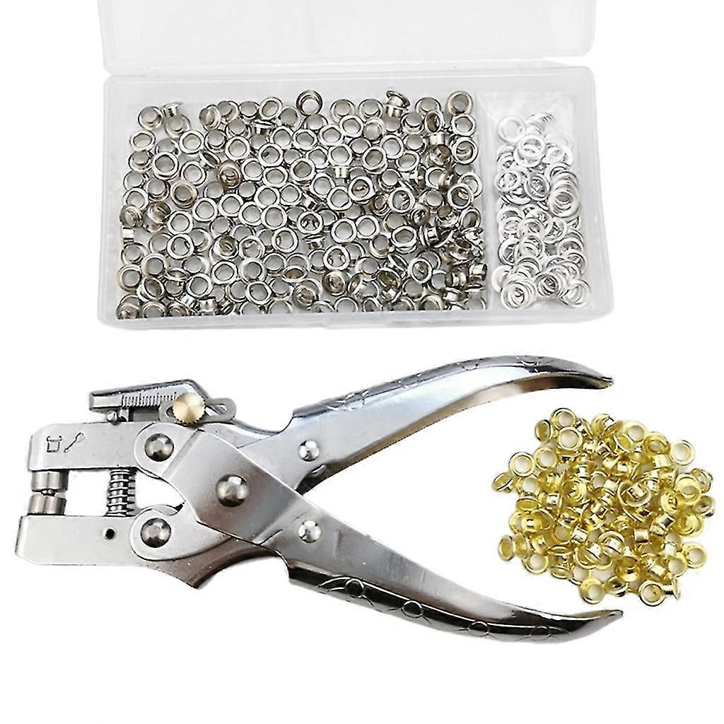 Grommet Eyelet Pliers 3/16 Inch Eyelet Hole Punch Pliers With 200 Piece Metal Eyelets Easy Press Hollow Grommet Portable Handheld Grommet Eyelet Setti
