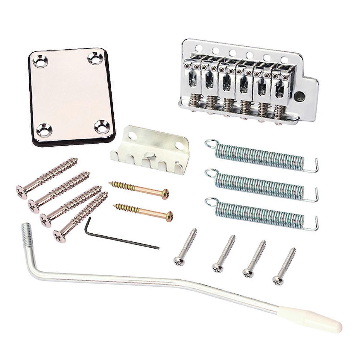 Electric Guitar Tremolo Bridge with Neck Plate, Durable Silver Parts for Style Guitars, Easy Installation, Replacement Accessory for Musical