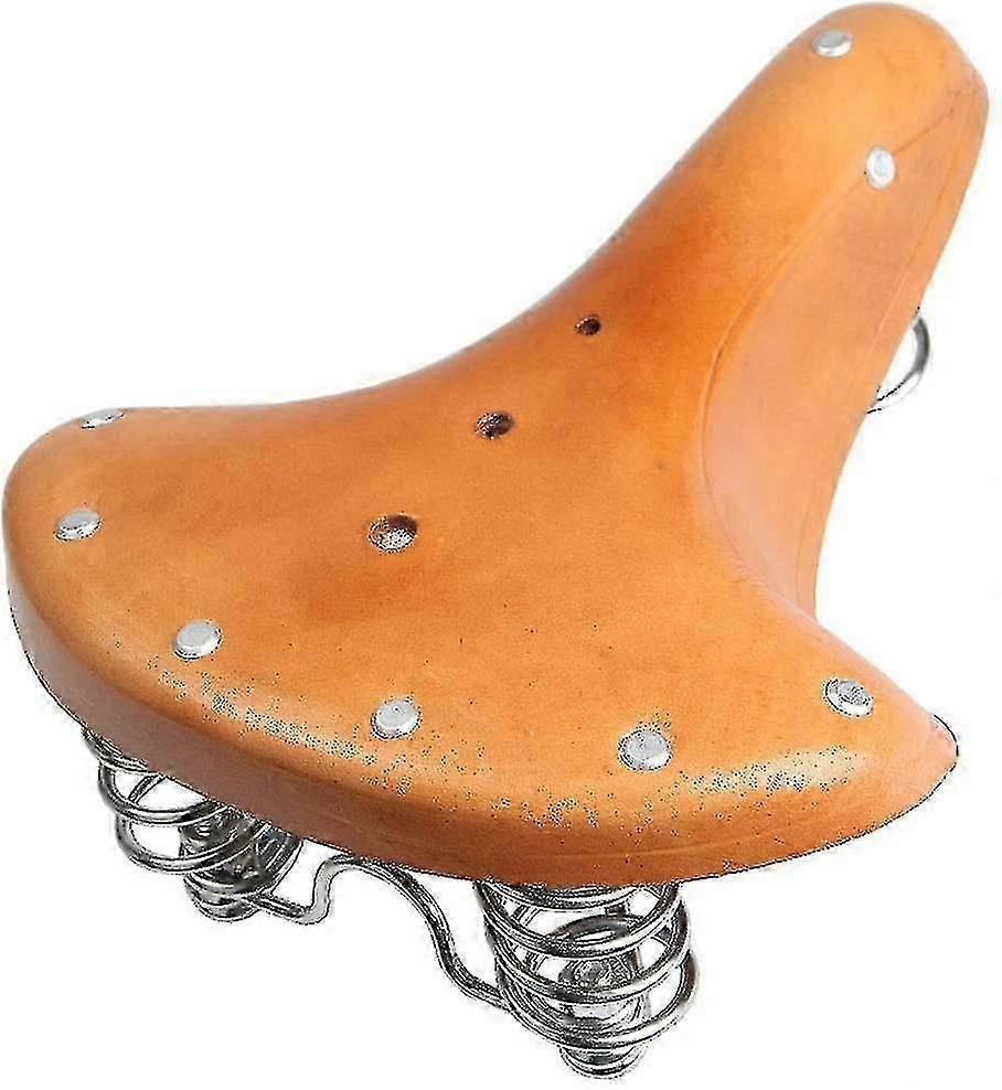 Genuine Leather Spring Bike Saddle, Retro Replacement Leather Bicycle Saddle Cushion Spring Seat