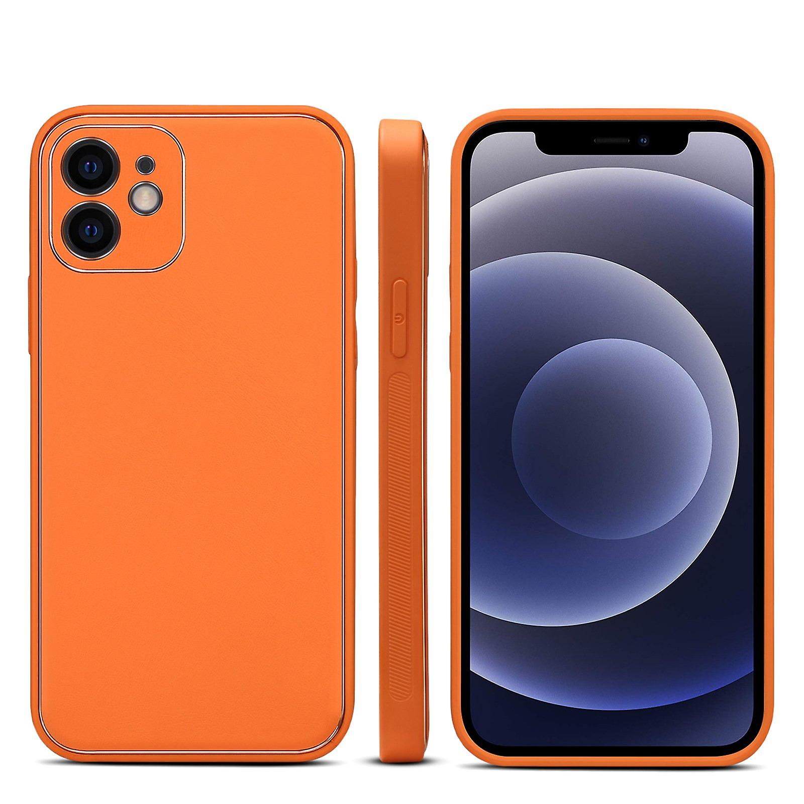 Genuine Leather Wallet Case Card Slot For Iphone 12pro 6.1 Orange Pc1569
