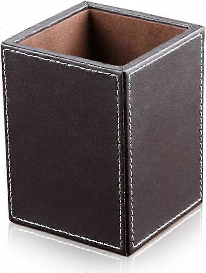Leather Square Pen Holder Cup Desk Stationery Storage Box Office Accessories Container Box (Brown)