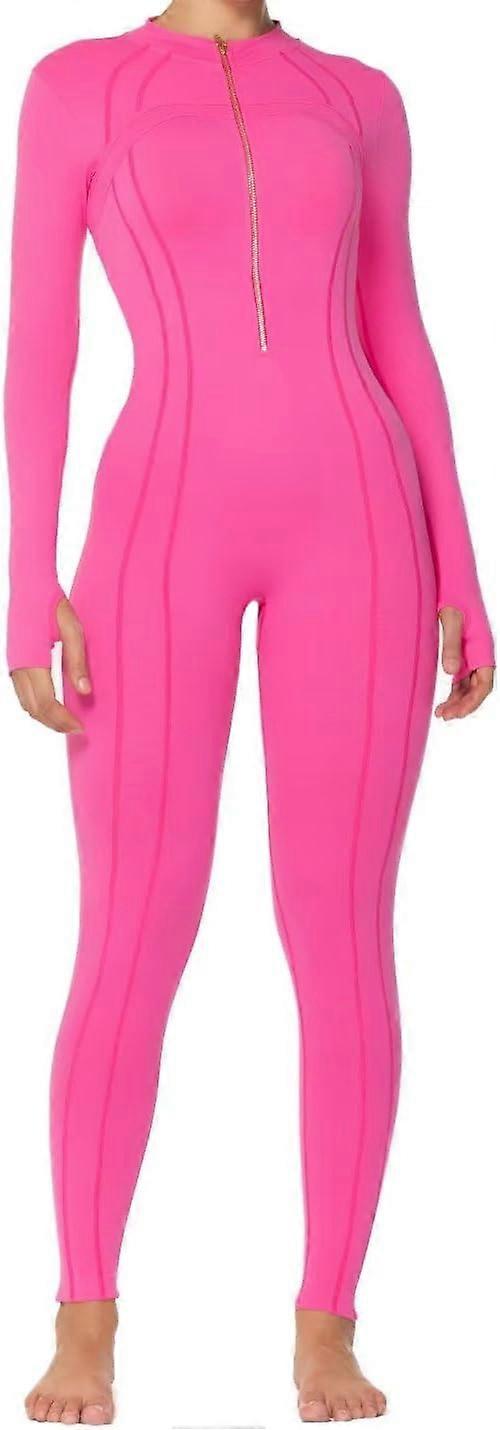 Yoga Jumpsuits for women, Long Sleeve Workout Jumpsuit, Gold Zipper Front, One Piece Sport Bodycon R