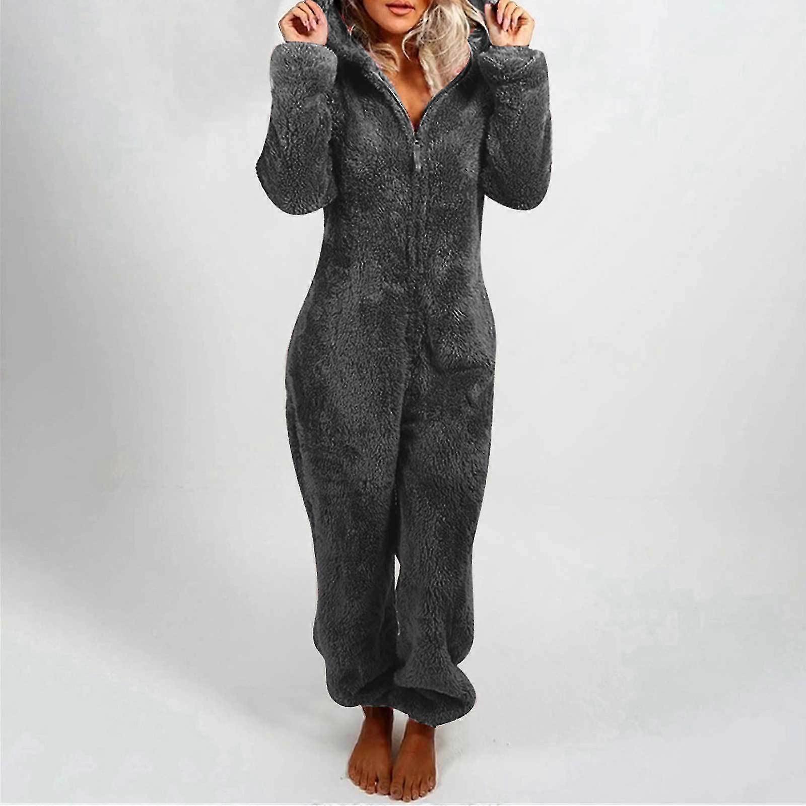 Women's Winter Fluffy Fleece Hooded All-in-One Jumpsuit - Embrace Warmth and Fashion with this Comfortable Winter Wardrobe Essential