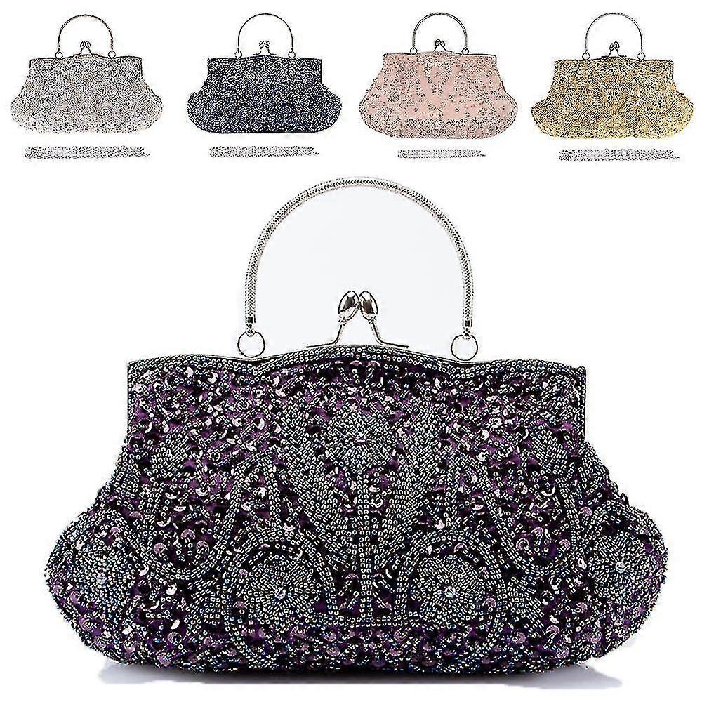 Collection Antique Floral Bead Sequin Soft Clutch Evening Bag Purse Clutch Handbag