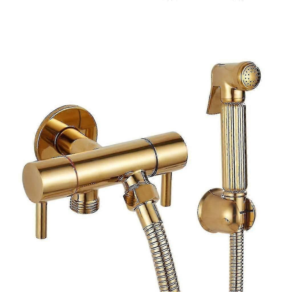 All-copper Pressurized Golden Toilet Spray Gun One Into Two Out Angle Valve Clean Body Bidet Nozzle Shower Rinse Bathroom Faucet-XT
