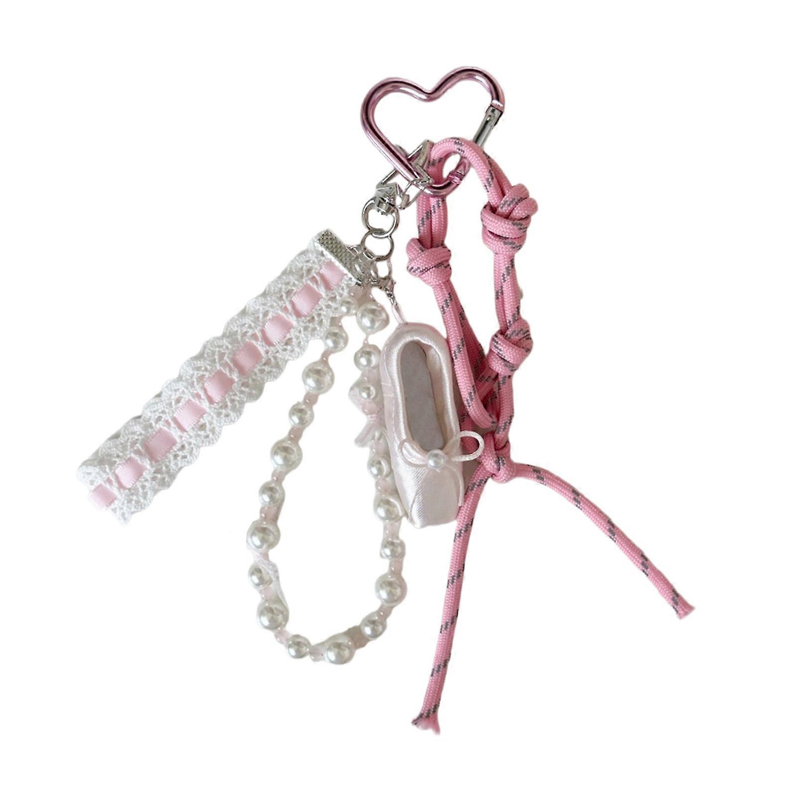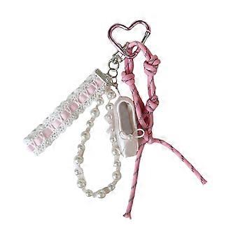 Lovely Ballet Lace Pearls Keychain Pendant Bag Phone Pendant Women Backpack Handbag Charm Lovely Hangings Decoration Pink