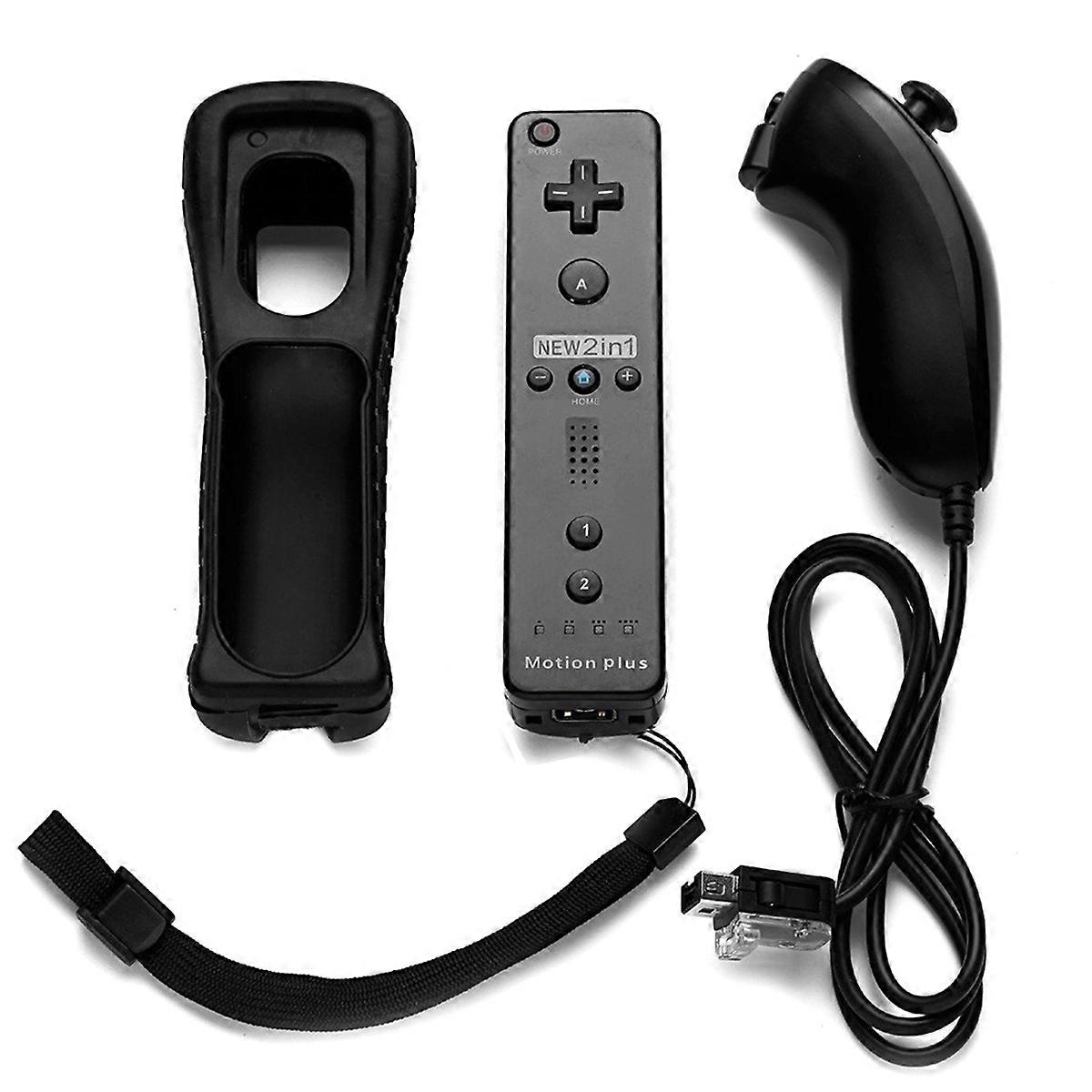 2 in 1 Remote & Nunchuck Controller Remote Controller Gamepad Black