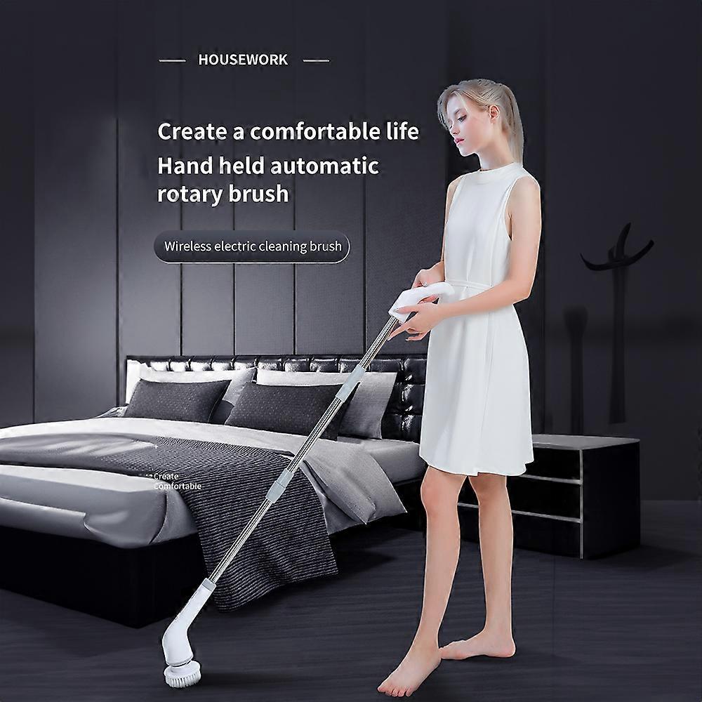 Cordless Electric Spin Scrubber 2 Speeds Power Cleaning Brush Scrubber with 7 Replaceable Brush Heads and Adjustable Extension Arm for Bathroom Floor