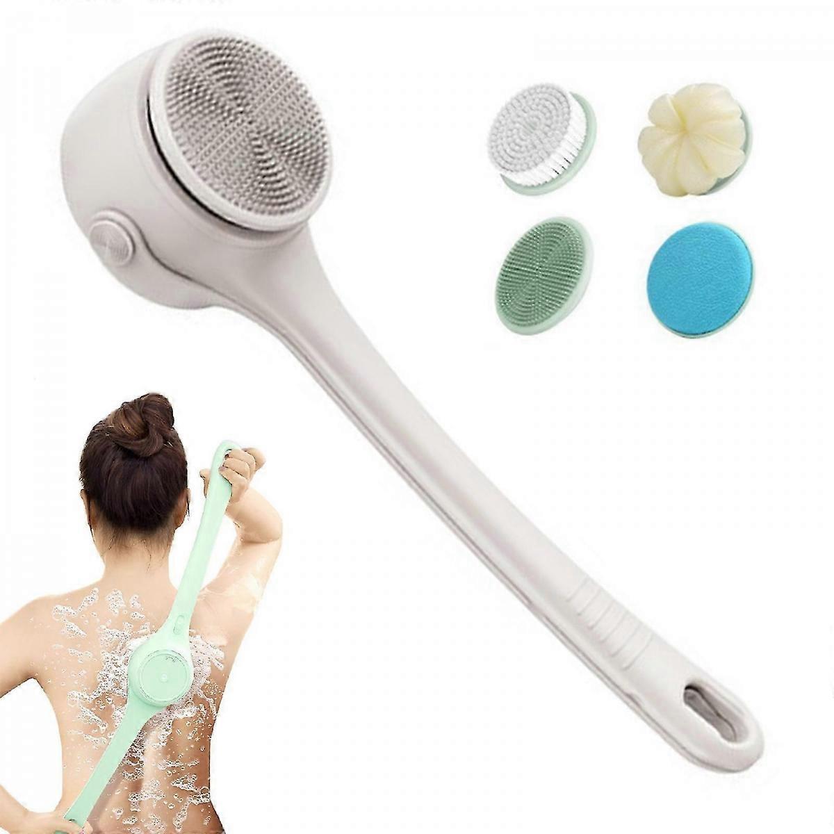 Electric Back Scrubber for Shower, Long Dual Handle Body Scrubber Spinning Massage Bath Brush,4 Detachable Heads
