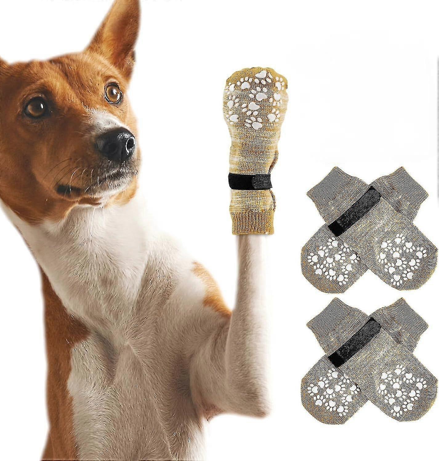 Double Side Anti-slip Dog Socks With Adjustable Straps, 2pairs Paw Protector Socks For Hot Pavement,hardwood Floors,prevent Licking Dog Paw-hy