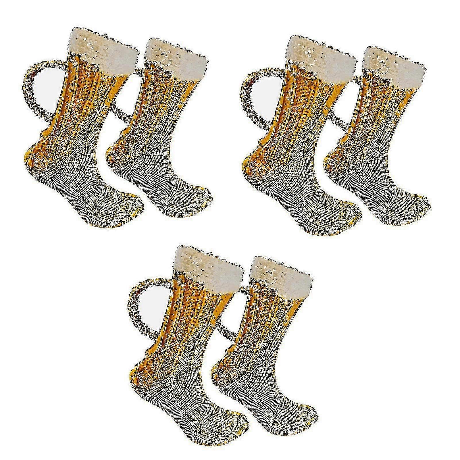 3d Beer Mug Socks Cute Unisex Funny Novelty Yellow Knit Socks Winter Warm Thick Floor Sock For Men