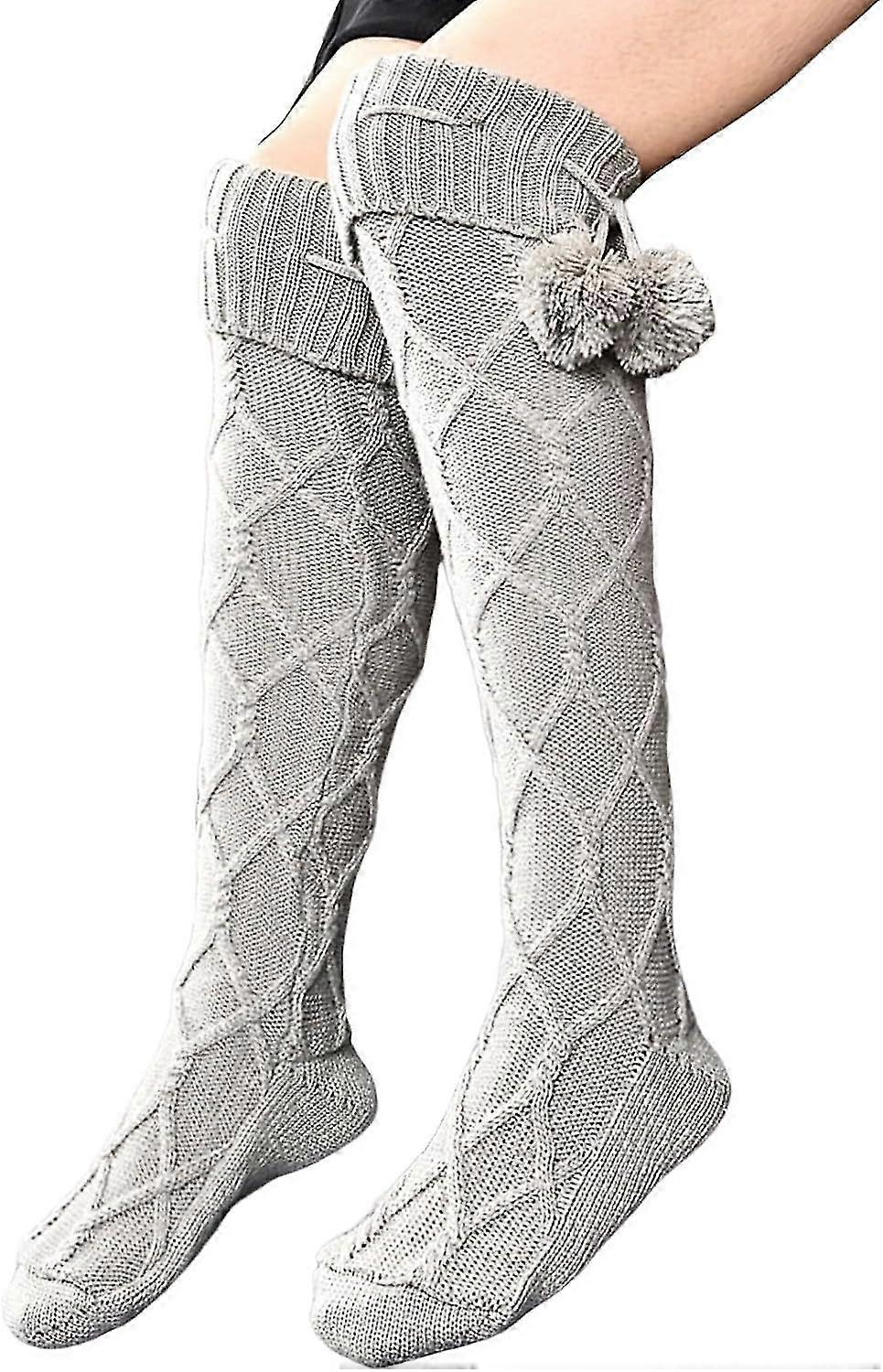 Hold-Up Stockings: Stylish Skin-Colored Knitted Socks for Autumn/Winter, Stacked Design, Above the Knee, with Wool Balls, Black Ankle Socks for Women^