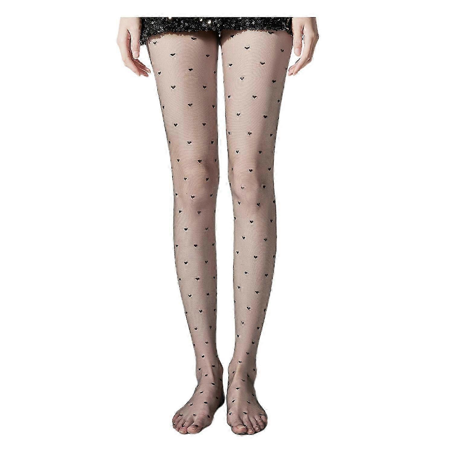 Women Pantyhose Dot Heart Print Ultra-thin See-through High Elasticity Anti-slip Solid Color Commute