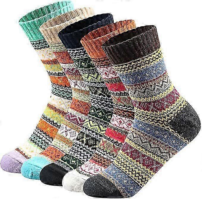 Womens Thick Socks Wool Thermal Warm Knitting Nordic Ladies Socks Winter-5 Pairs