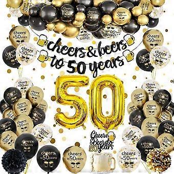 50th Birthday Decorations - Cheers Beers to 50 Years Banner and Balloons
