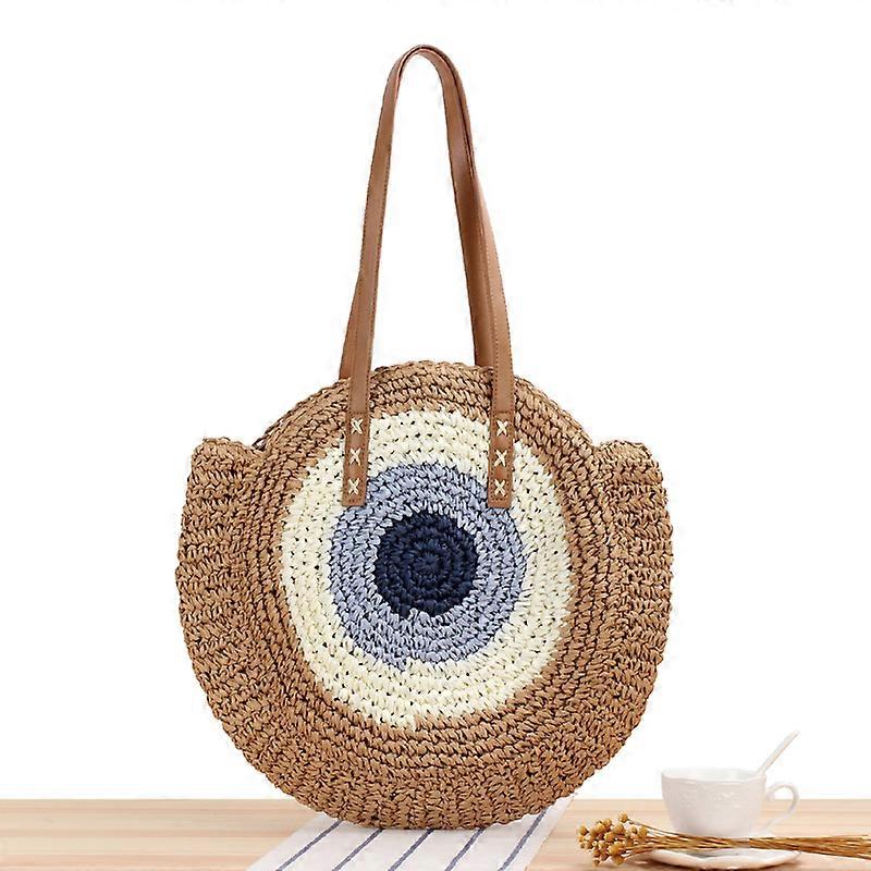 Round Straw Beach Bag Vintage Handmade Woven Shoulder Bag Raffia Circle Rattan Bags Bohemian Summer Vacation Casual Bags