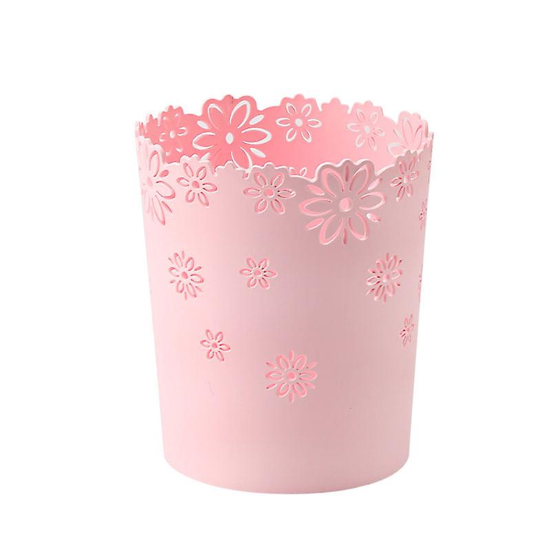 Round Trash Can Plastic Hollow Waste Paper Rubbish Basket For Office Plastic Trash Can(1pc, pink)