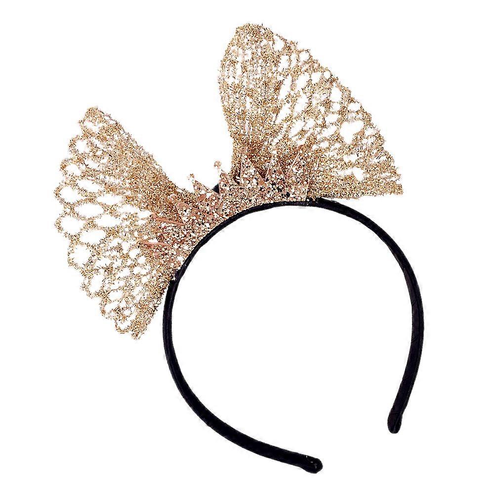Golden Kids Hair Hoop with Bowknot and Crown Decor for Party Gathering Birthday 1 Pc
