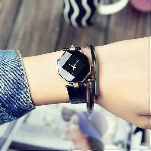Gem Cut Geometry Crystal Leather Quartz Wristwatch Fashion Watch for Ladies