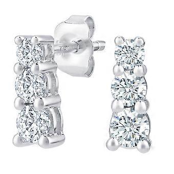 Jewelco London 9ct White Gold Round 1/2ct Diamond Trilogy Stud Earrings