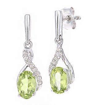 Jewelco London 9ct White Gold Round 5pts Diamond Oval 1.05ct Peridot Kiss Crossover Drop Earrings