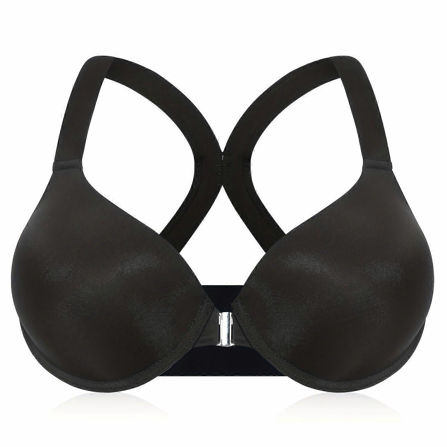 JUEGE* Plus Size Elegant Bra, Women's Plus Closure Front Racer Back Ultra Soft Full Cover Comfort T-Shirt Bra