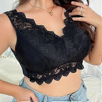 JUEGE* Plus Size Elegant Bra, Women's Plus Contrast Floral Lace Scalloped Trim High Stretch Wide Strap Bralette