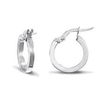 جويلكو لندن السيدات 9ct الأبيض الذهب مربع أنبوب 2mm هوب الأقراط 14mm