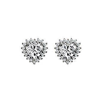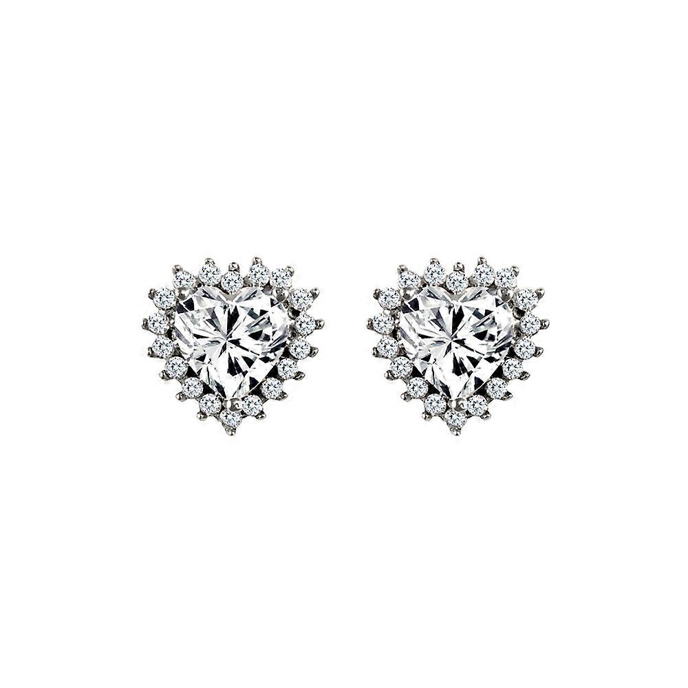 Jewelco London Ladies 9ct White Gold White Round Brilliant Cubic Zirconia Love Heart Cluster Stud Earrings