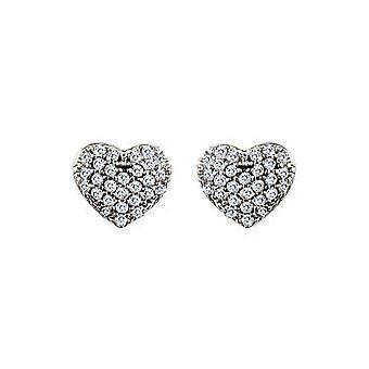 جويلكو لندن السيدات 9ct الذهب الأبيض الأبيض جولة رائعة زيركونيا مكعب القبة تمهد الحب القلب مسمار الأقراط