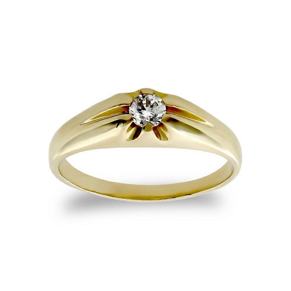Jewelco London Kids Solid 9ct Yellow Gold White Round Brilliant Cubic Zirconia Gypsy Solitaire Baby Ring