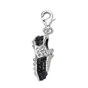 Jewelco London Rhodium Coated Sterling Silver Black & White Crystal Link Charm