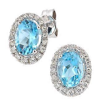 Jewelco London 9ct White Gold Round 20pts Diamond Oval 2ct Blue Topaz Cluster Drop Earrings