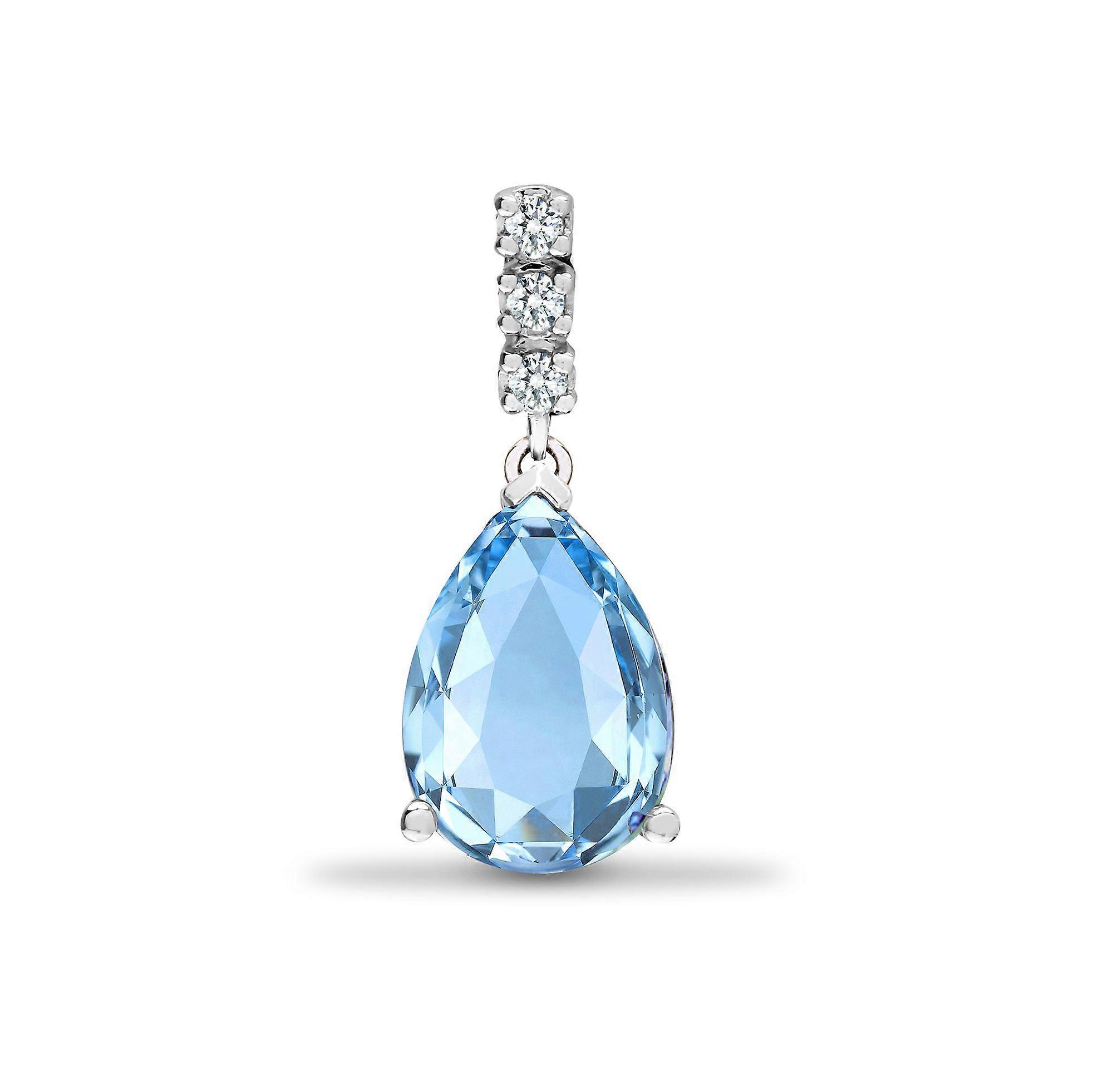 Jewelco London 18ct White Gold 3 Claw Set Round H I1 0.05ct Diamond and Pear Blue 1.8ct Topaz Tears Of Joy Drop Pendant