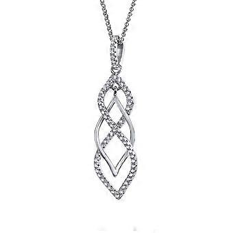 Jewelco London Rhodium Plated Sterling Silver White Cubic Zirconia Twisted Infinity Teardrop Charm Pendant Necklace - 16>18 inch