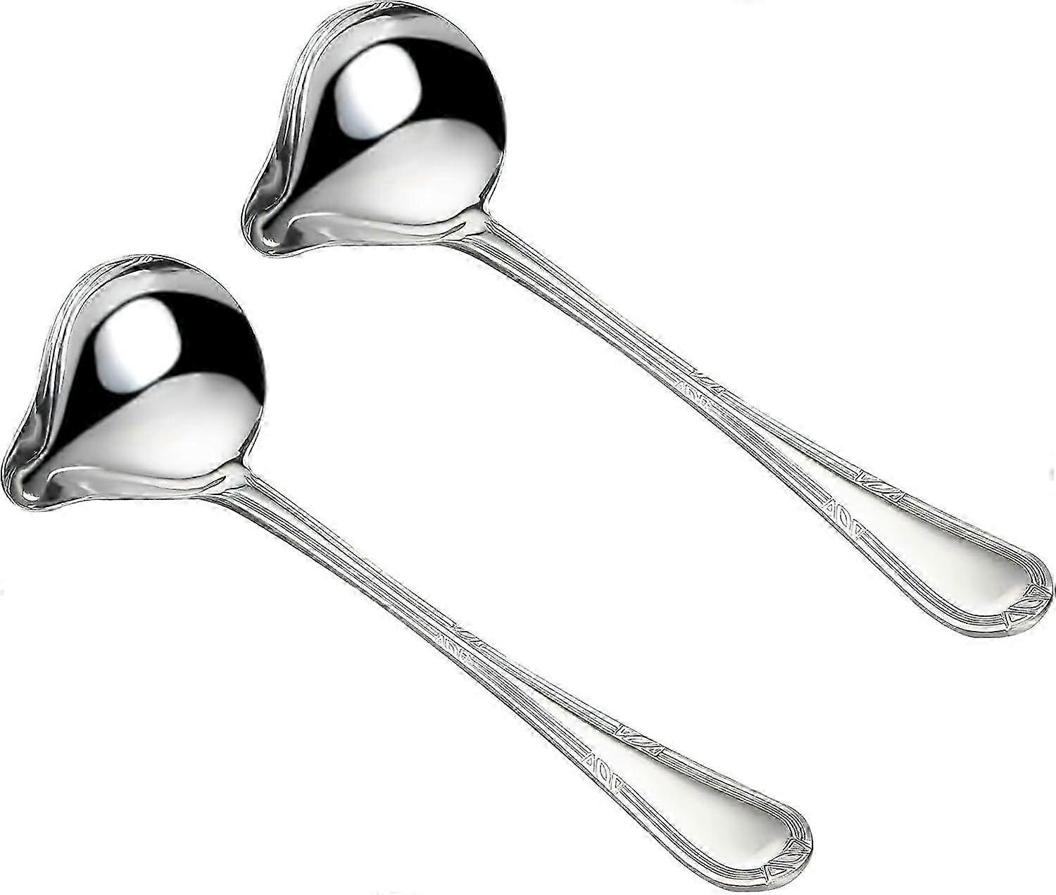JiaWei 2 Stainless Steel Sauce Spoons, Soup Ladle Silver 20cm, Small Sauce Spoon with Pourer for Dressings, Soup, Sauces ENc