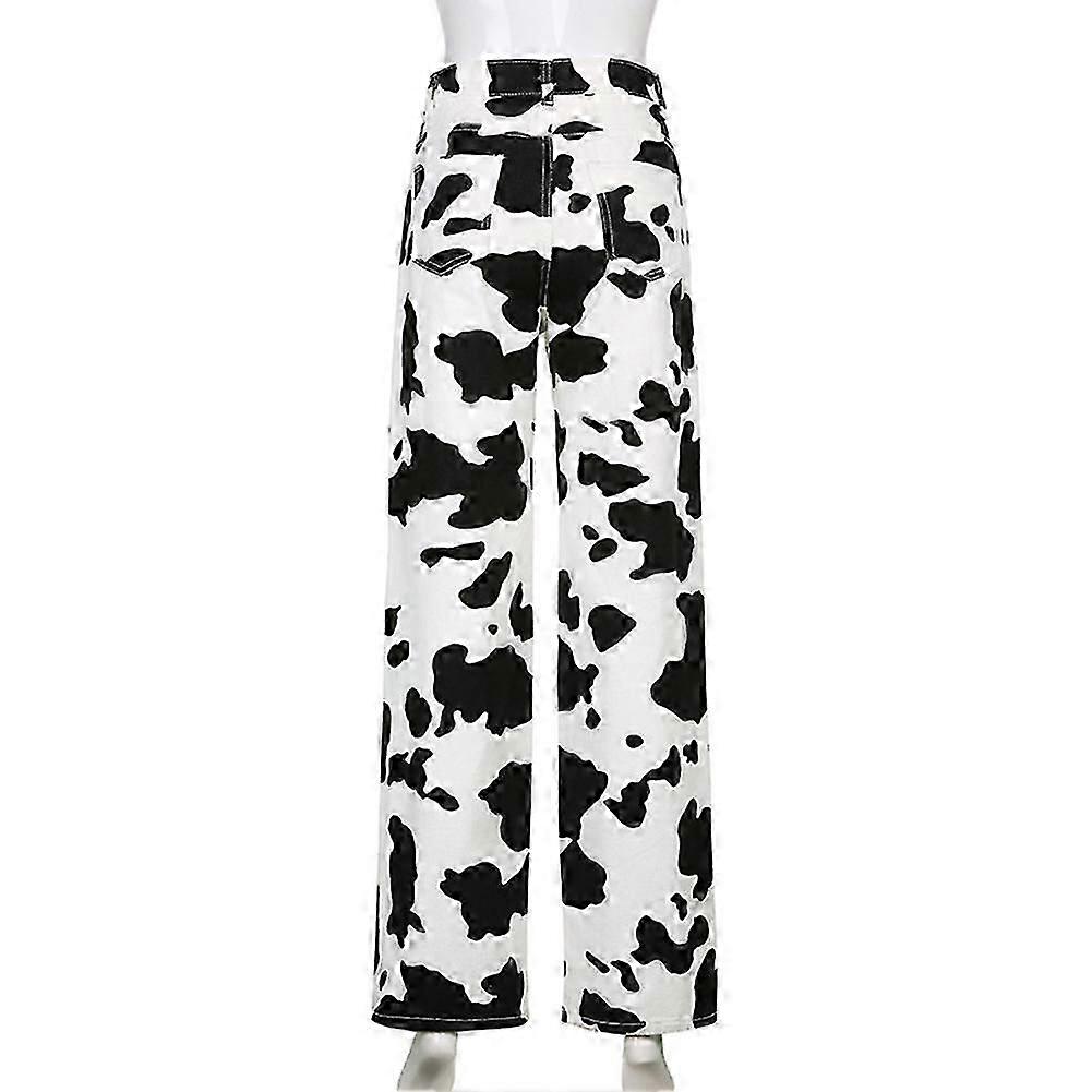 Women's High-waisted Cow Print Jeans, Loose Straight Pants For Spring/summer 2024,100% New