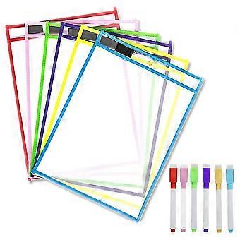 جيوب محو جافة قابلة لإعادة الاستخدام ، 6 عبوات قابلة لإعادة الاستخدام أكمام محو جافة ، واقي ورقة ألوان ، محو جاف بو
