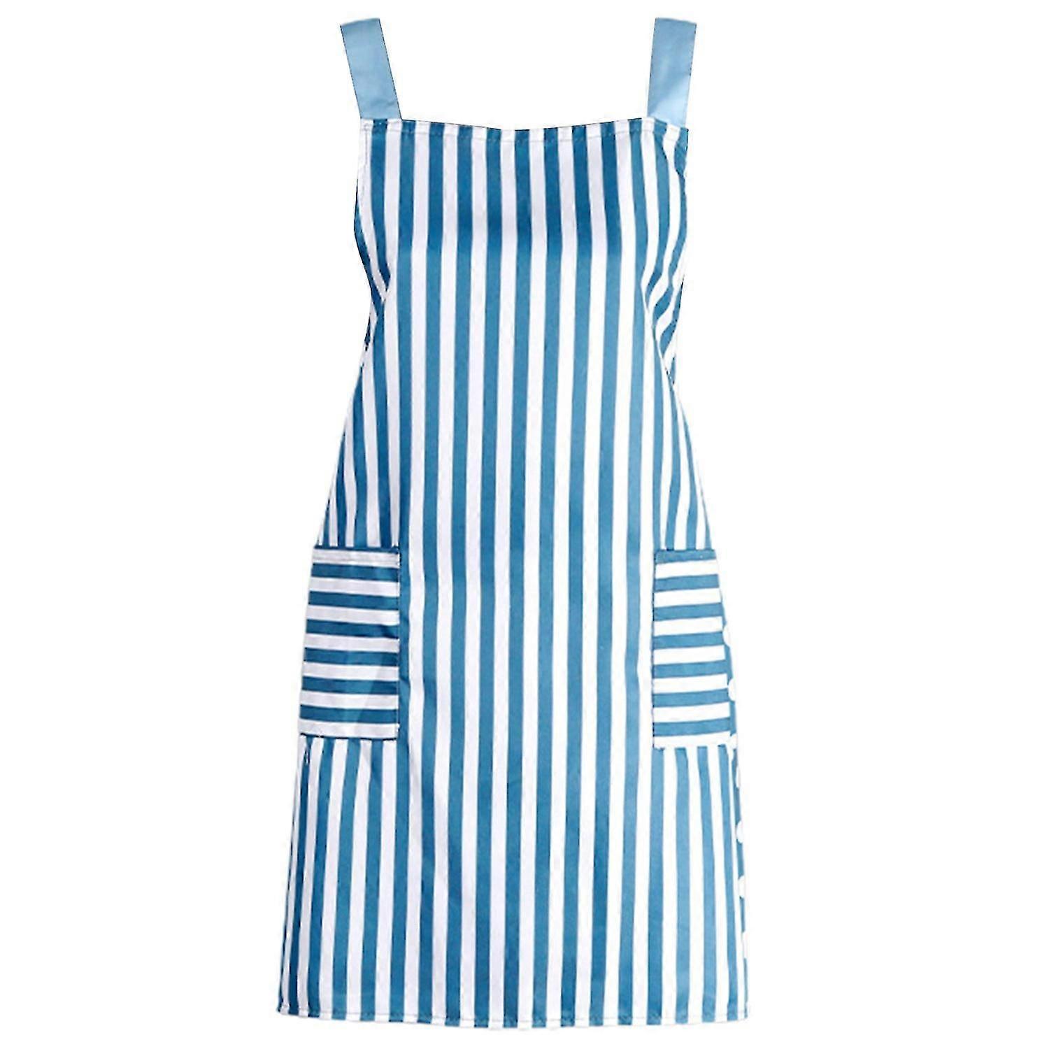 Double Pockets Kitchen Apron Back Strap Oilproof Polyester Cotton Dot Striped Pattern Waterproof