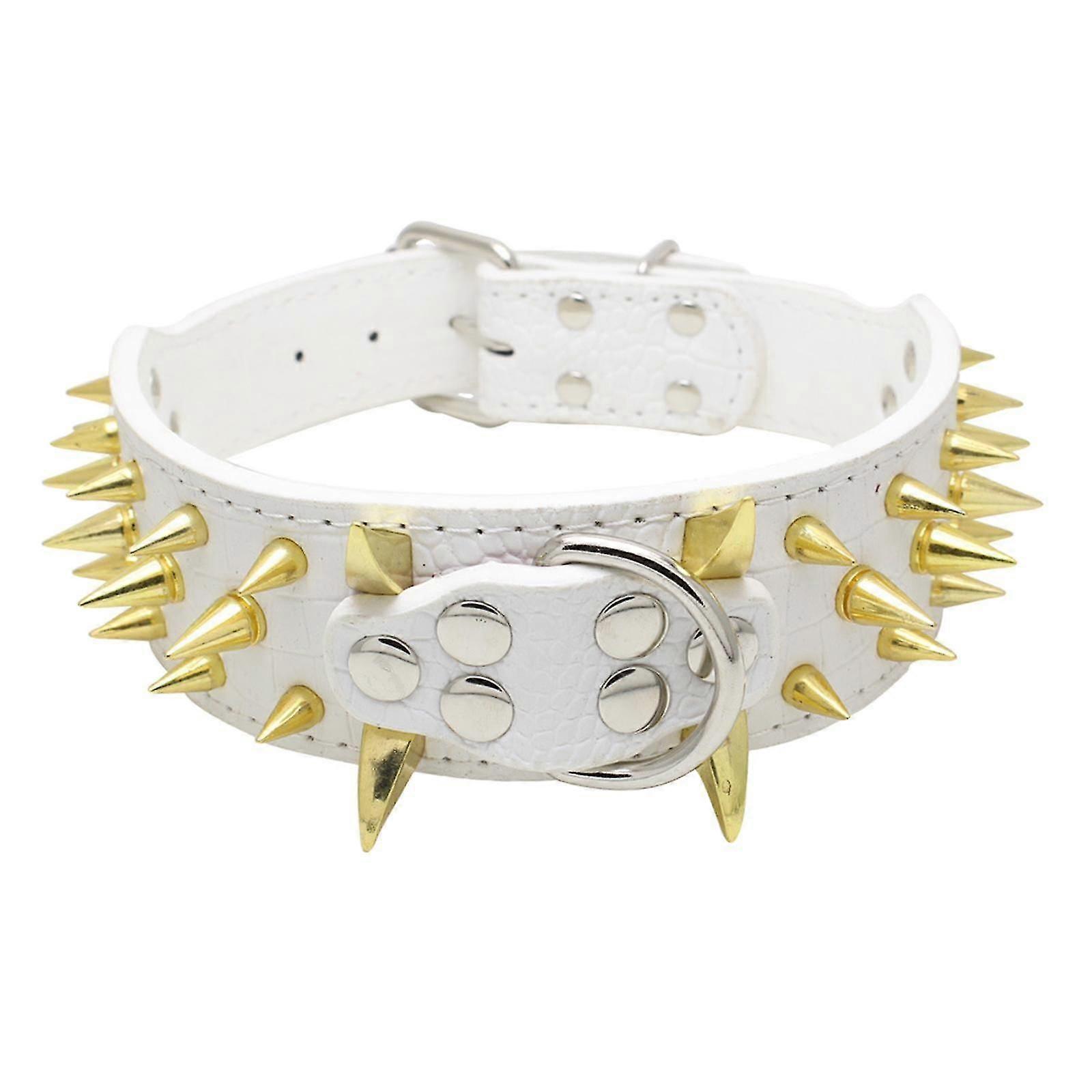 Sharp Studded Rivet Pu Leather Dog Pet Puppy Collar 2" Large Xs Gold And White