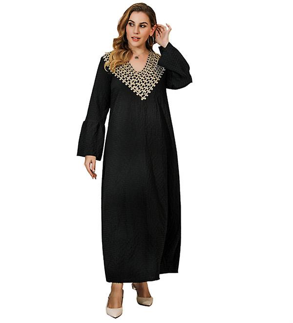 Hot Selling Spring And Summer Women's Long-sleeved Trumpet-sleeved Robe V-neck Embroidered Dress 200 Catties Can Be Worn