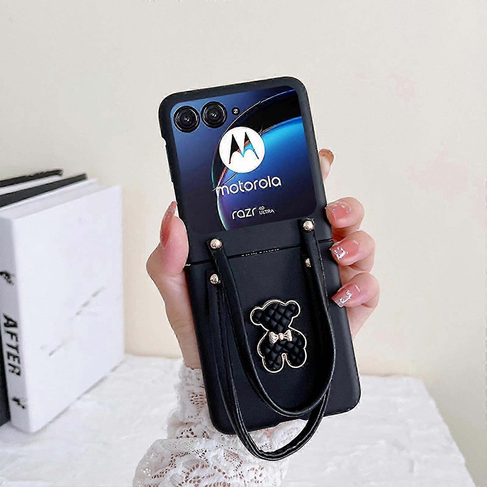 Cute Bear Case Compatible with Motorola Razr 40 Ultra, Hard Pc Slim Cover With Wrist Strap For Motorola Razr Plus