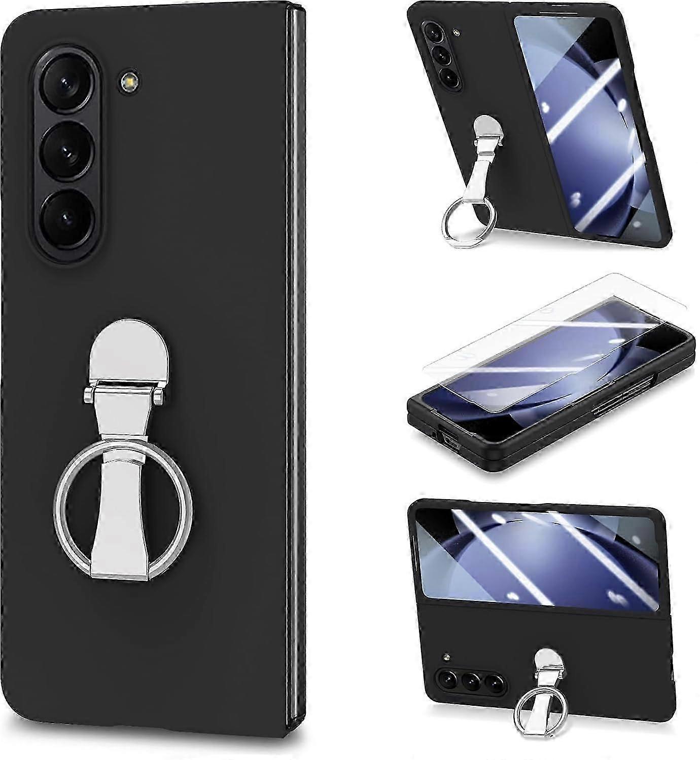 Ultra Thin Hard PC Case for Samsung Galaxy Z Fold 5 with Adjustable Metal Ring Holder Stand Kickstand Built in Screen Protector