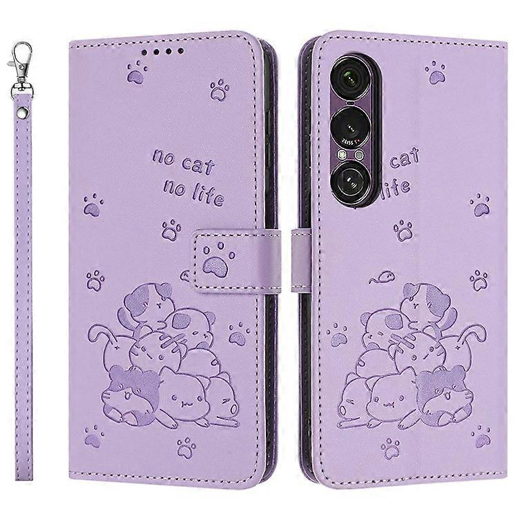 Wallet Case Compatible For Sony Xperia 1 VII Imprint Leather Phone Cover with Strap