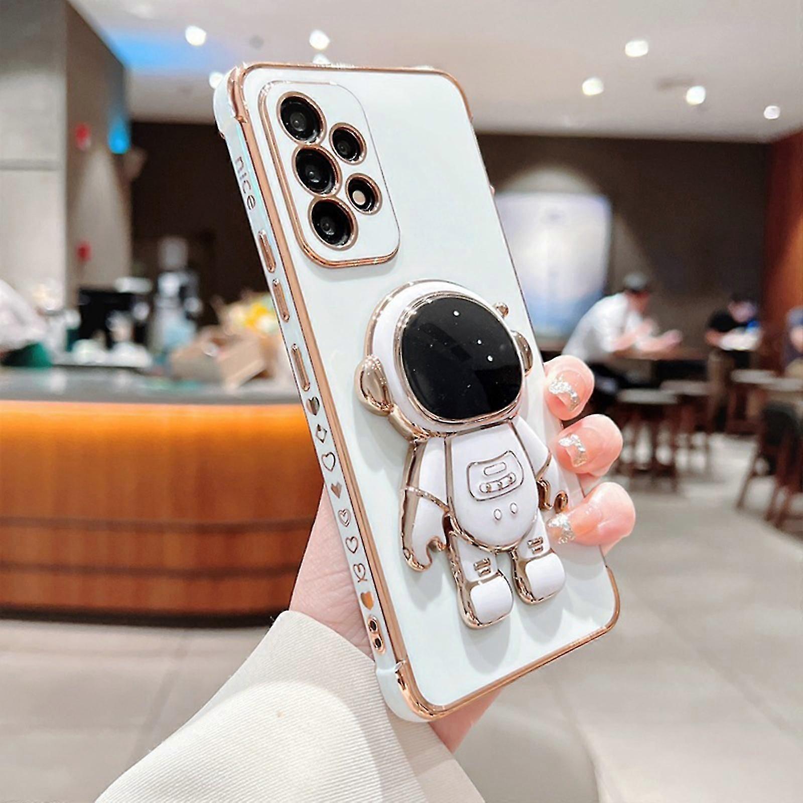 Phone Case for Samsung Galaxy S24 Ultra, Luxury Plating Astronaut Stand Holder Phone Case with Cute Love Heart Side Kickstand Cover