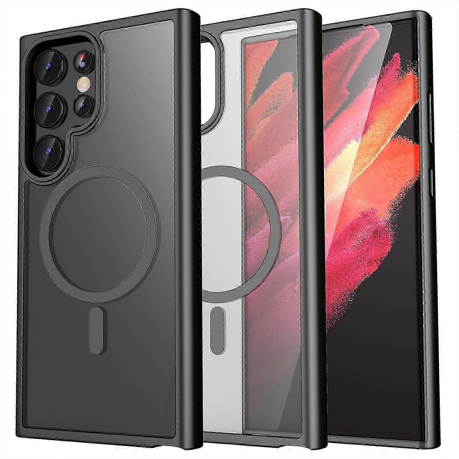 Magnetic Phone Case Compatible with Samsung Galaxy S24 Series, Anti-Fingerprints Black Frosted Back Cover Camera Protection Shockproof Case with Wirel